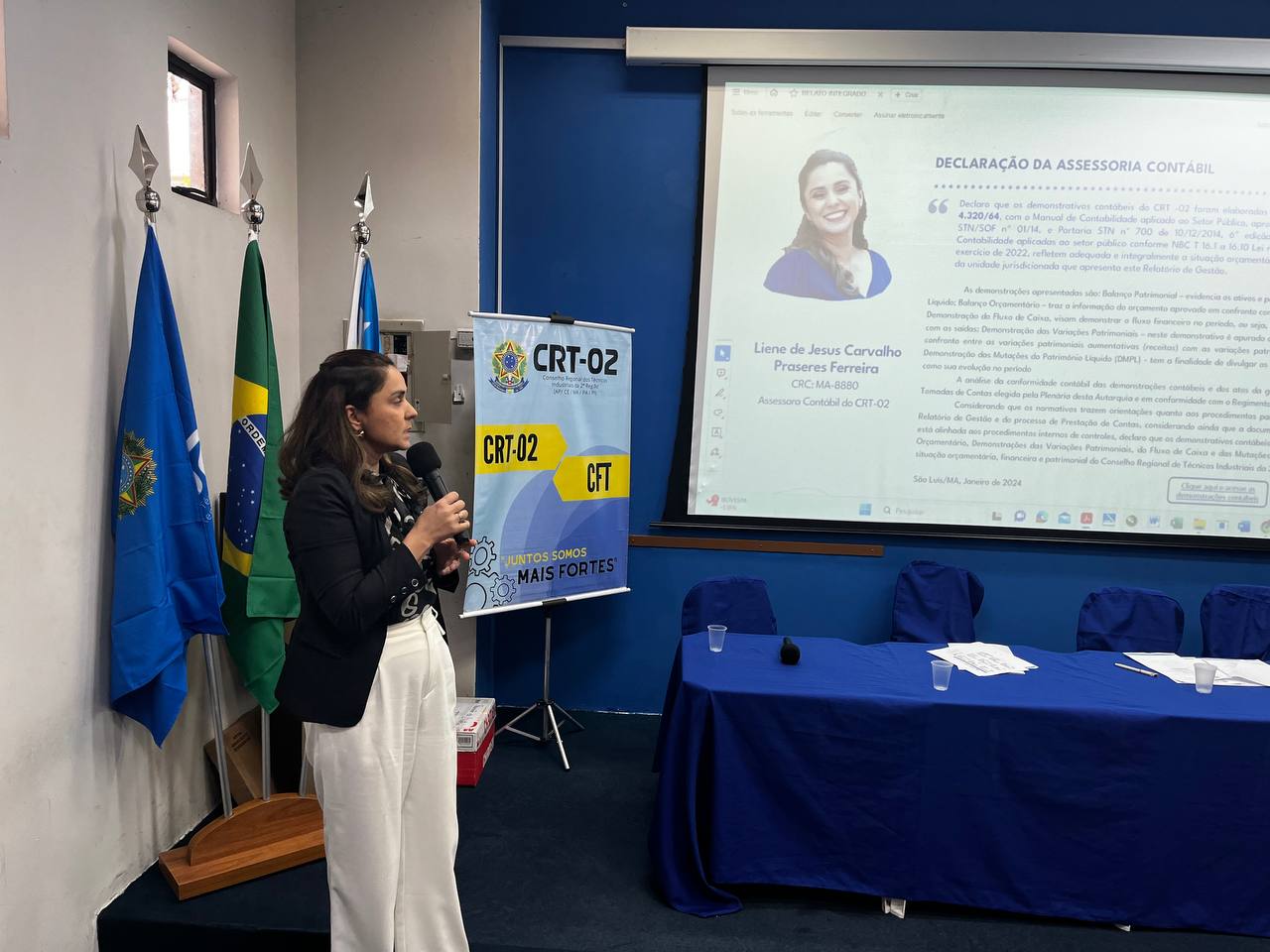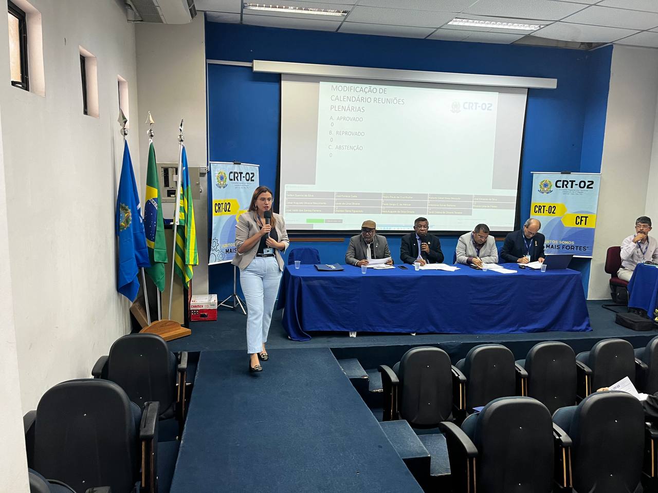 órum; Execução do Hino Nacional Brasileiro; Discussão e aprovação da ata da reunião plenária anterior; Apresentação de comunicações; Comunicados dos Conselheiros; Leitura e discussão da pauta, com adição de pauta extra. Na Ordem do Dia, ocorreu: Revisão do Calendário das reuniões do Plenário e das Comissões Permanentes do CRT-02 para o ano de 2024; Aprovação/Deliberação das contas do CRT-02 referentes aos meses de Outubro/Novembro/Dezembro de 2023; Aprovação/Deliberação do Relato Integrado de 2023; Discussão de Pauta Extra, como o Relato das Comissões Permanentes.