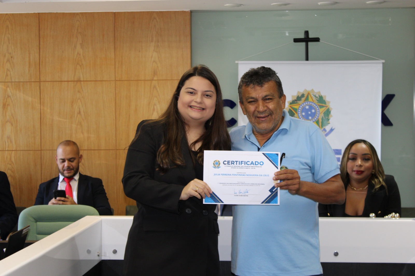 O segundo dia do evento foi marcado pela cerimônia de entrega de certificados aos procuradores. Dra. Julia Fontinhas, do CRT-02, recebeu honraria das mãos do presidente do CRT-ES, Valmir Xavier Martins, em um momento que reforçou o reconhecimento da importância do trabalho jurídico nos conselhos regionais. “O Seminário no formato “Mesa Redonda” propiciou uma troca volumosa de experiências. Depois dele, os Regionais presentes conjuntamente com o Conselho Federal propuseram mais de 8 (oito) demandas atinentes ao sistema para serem implementadas, discutidas e postas em prática de maneira conjunta e unificada”, destacou Fontinhas.