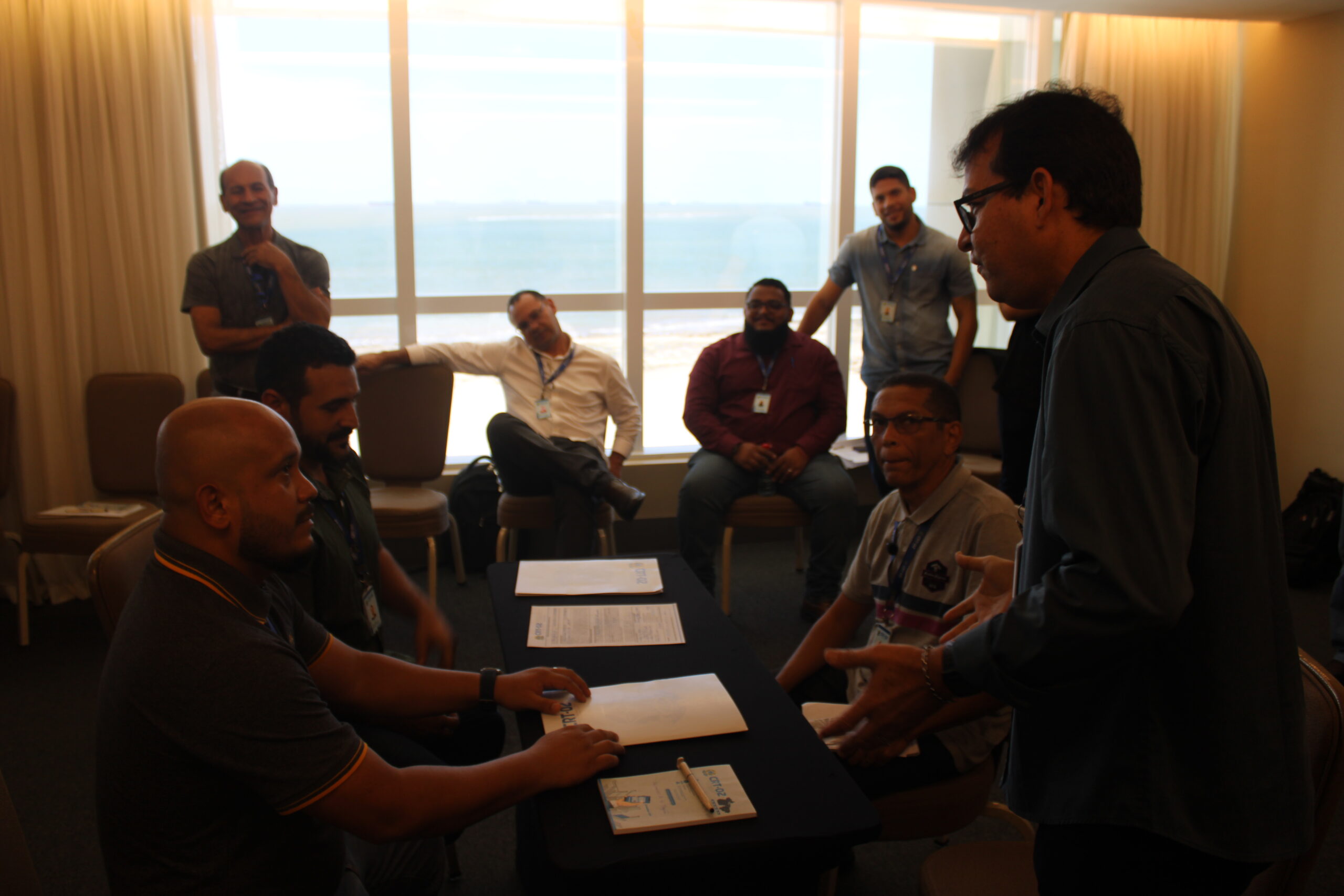 A programação do último dia do encontro foi marcada por diversas atividades de capacitação. A manhã teve início com uma palestra sobre Direção Defensiva, ministrada pelo facilitador Railson Kós, Professor do Serviço Nacional de Aprendizagem Industrial (SENAI). Em seguida, Teônio Silva conduziu a revisão do Manual de Fiscalização, culminando com um Simulado de Fiscalização coordenado pelos facilitadores, incluindo Coordenadores da Fiscalização do CRT-02, Agentes Fiscais e o Gerente da Fiscalização.