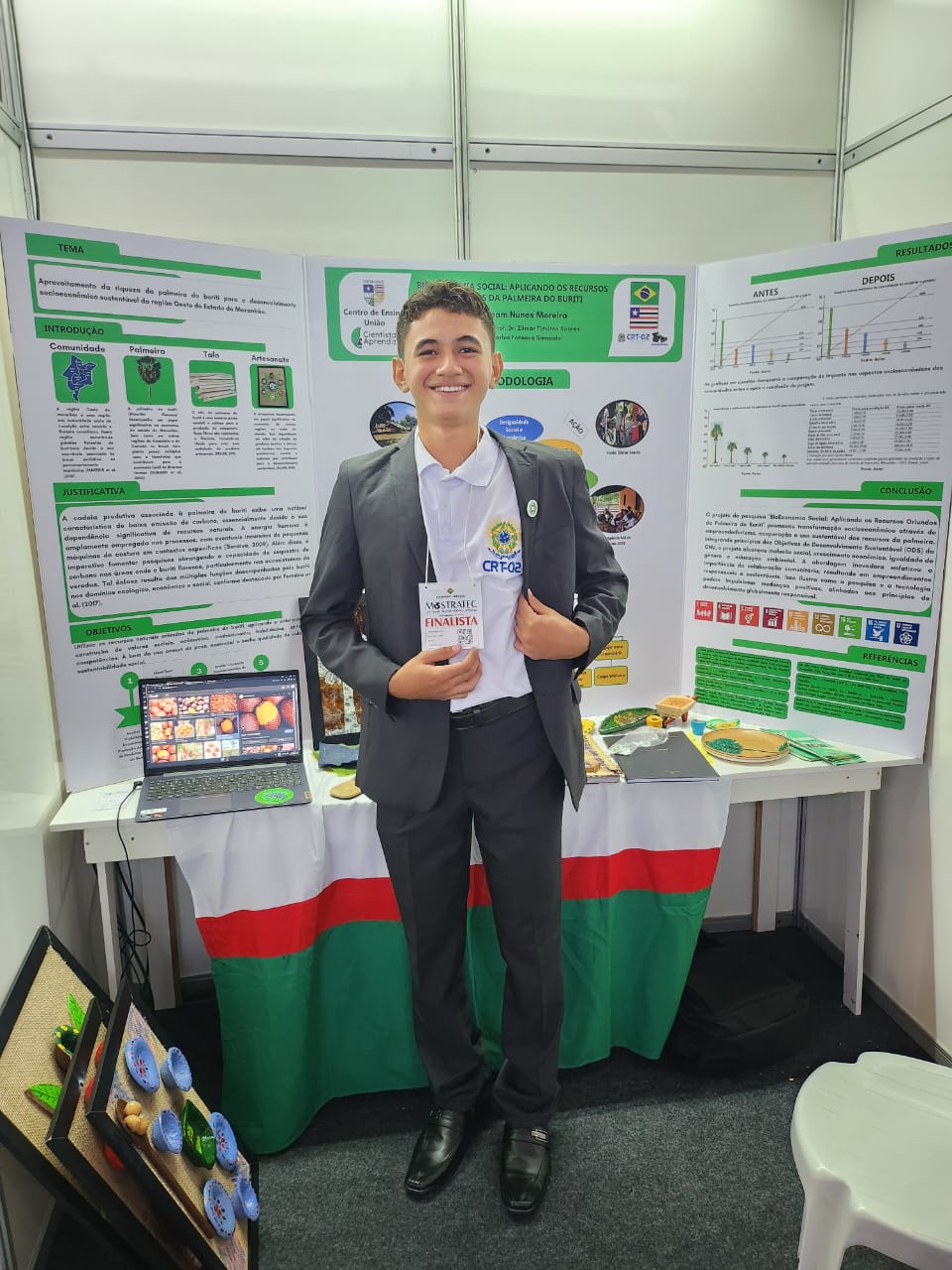 Além disso, um outro projeto de destaque na MOSTRATEC 2023 foi o trabalho do aluno Jean Moreira, cujo projeto intitulado “Bioeconomia social: aplicando os recursos oriundos da palmeira do Buriti” cativou a atenção dos presentes. Jean apresentou uma abordagem inovadora e prática para utilizar os recursos provenientes da palmeira do buriti, uma planta abundante em diversas regiões do país, para promover a sustentabilidade e o desenvolvimento social em comunidades locais.