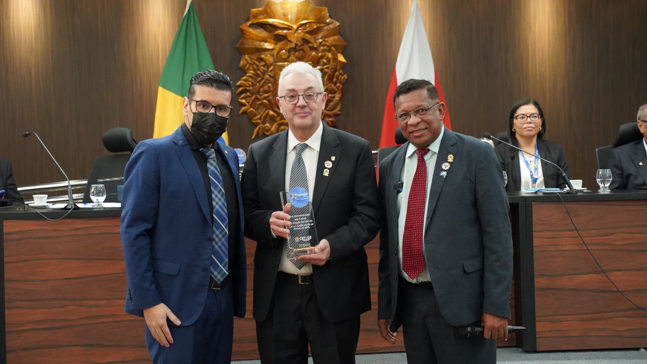 O presidente do CRT-02, João Batista Souza, foi convidado de honra da sessão e ocupou assento ao lado do deputado Fábio Freitas, autor do requerimento que deu origem à solenidade.