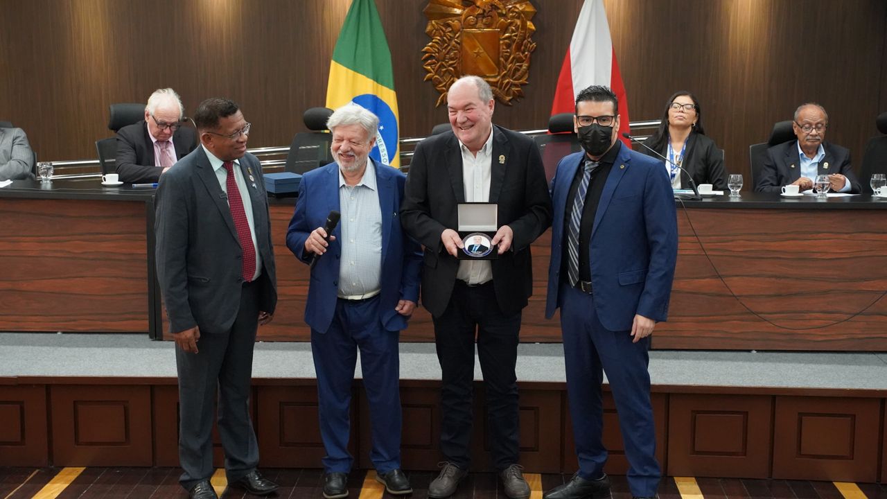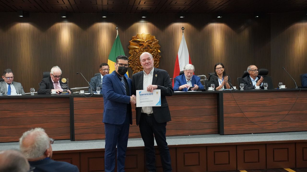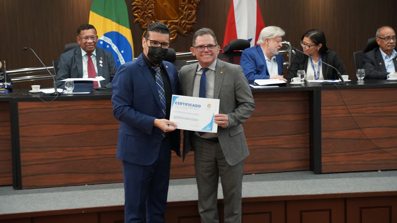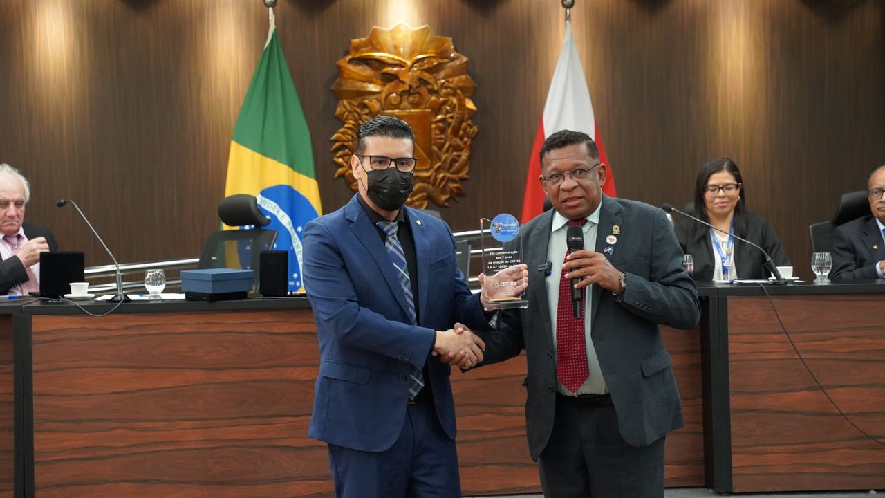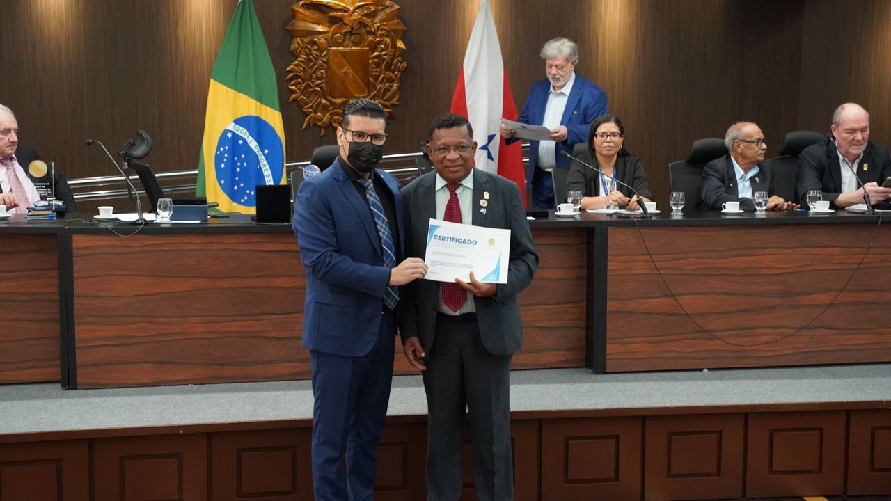 Encerrando a solenidade, o deputado estadual Fábio Freitas concedeu homenagens especiais previstas pelo regimento da ALEPA a personalidades que têm contribuído, ao longo desses 7 anos, para o desenvolvimento e fortalecimento do Sistema CFT/CRTs.