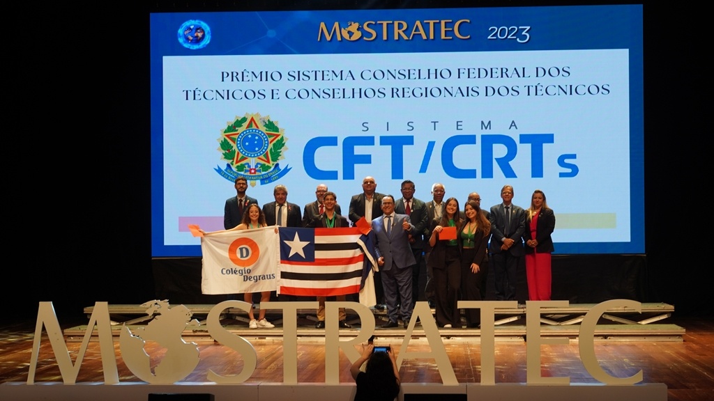 Alunos apoiados pelo Conselho Regional dos Técnicos Industriais da 2ª Região, são primeiros colocados da 38ª edição da Mostra Internacional de Ciência e Tecnologia (Mostratec), onde receberam prêmios de incentivo à pesquisa e inovação. O Presidente do CRT-02, João Batista Souza e representantes dos Conselhos Regionais que integram o Sistema CFT/CRTs, subiram ao palco na cerimônia de premiação realizada na noite de sexta-feira (27), na cidade de Novo Hamburgo, no Rio Grande do Sul.