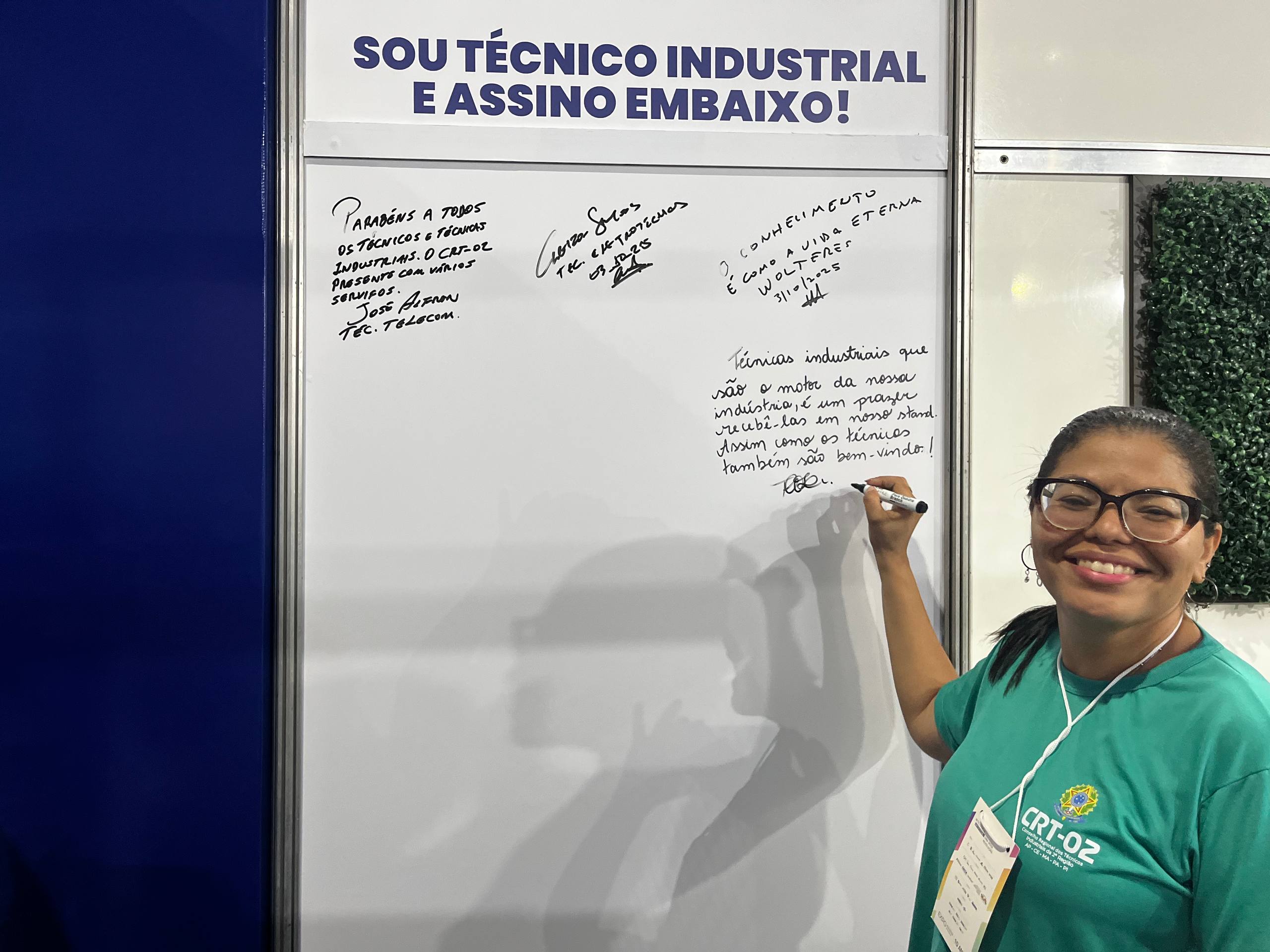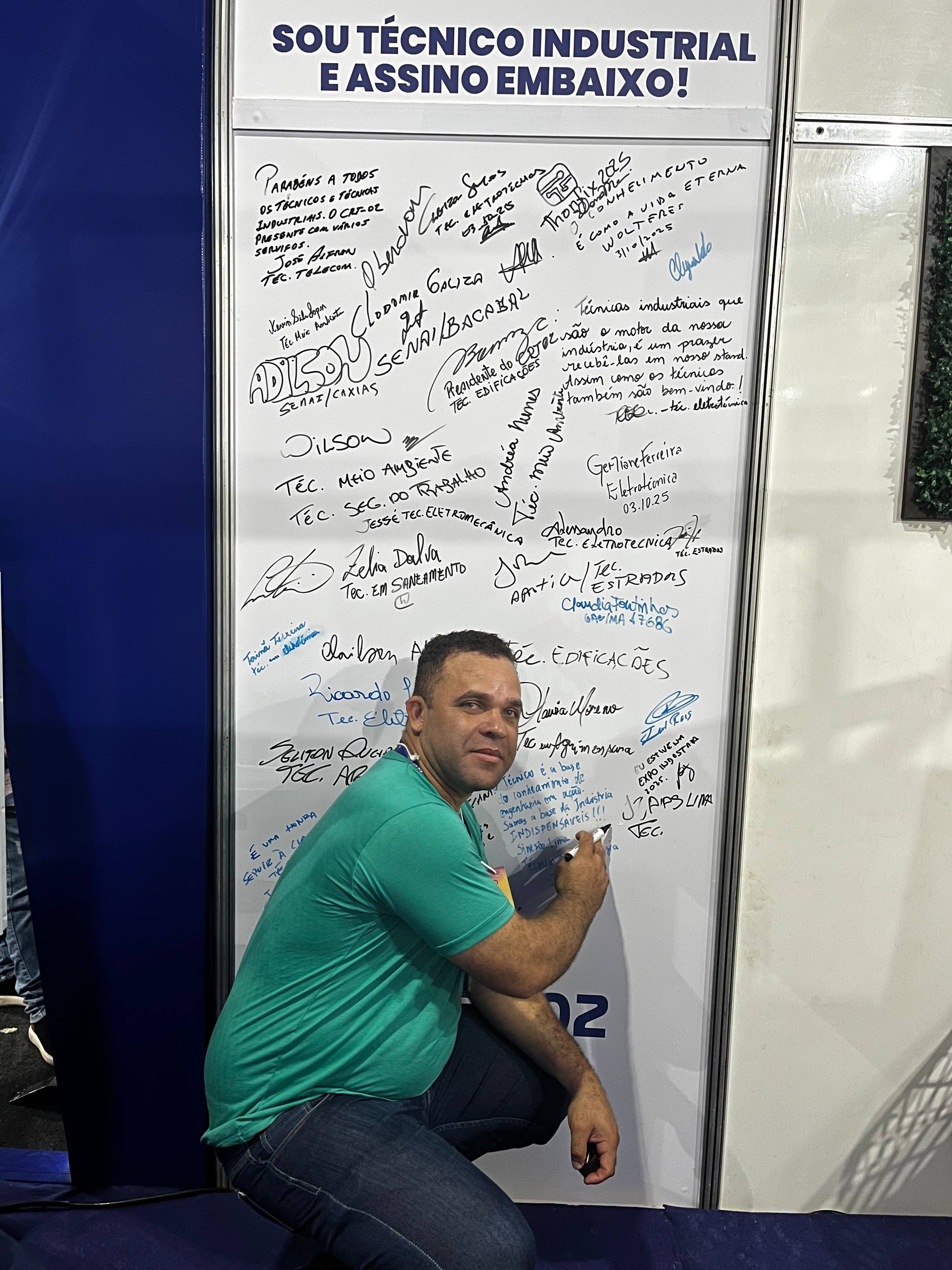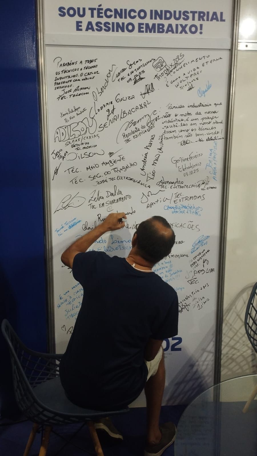 Durante o dia, continuaram as emissões de carteirinhas físicas e as assinaturas no Painel dos Técnicos Industriais, simbolizando o engajamento da categoria e o sucesso da ação do Conselho na feira.