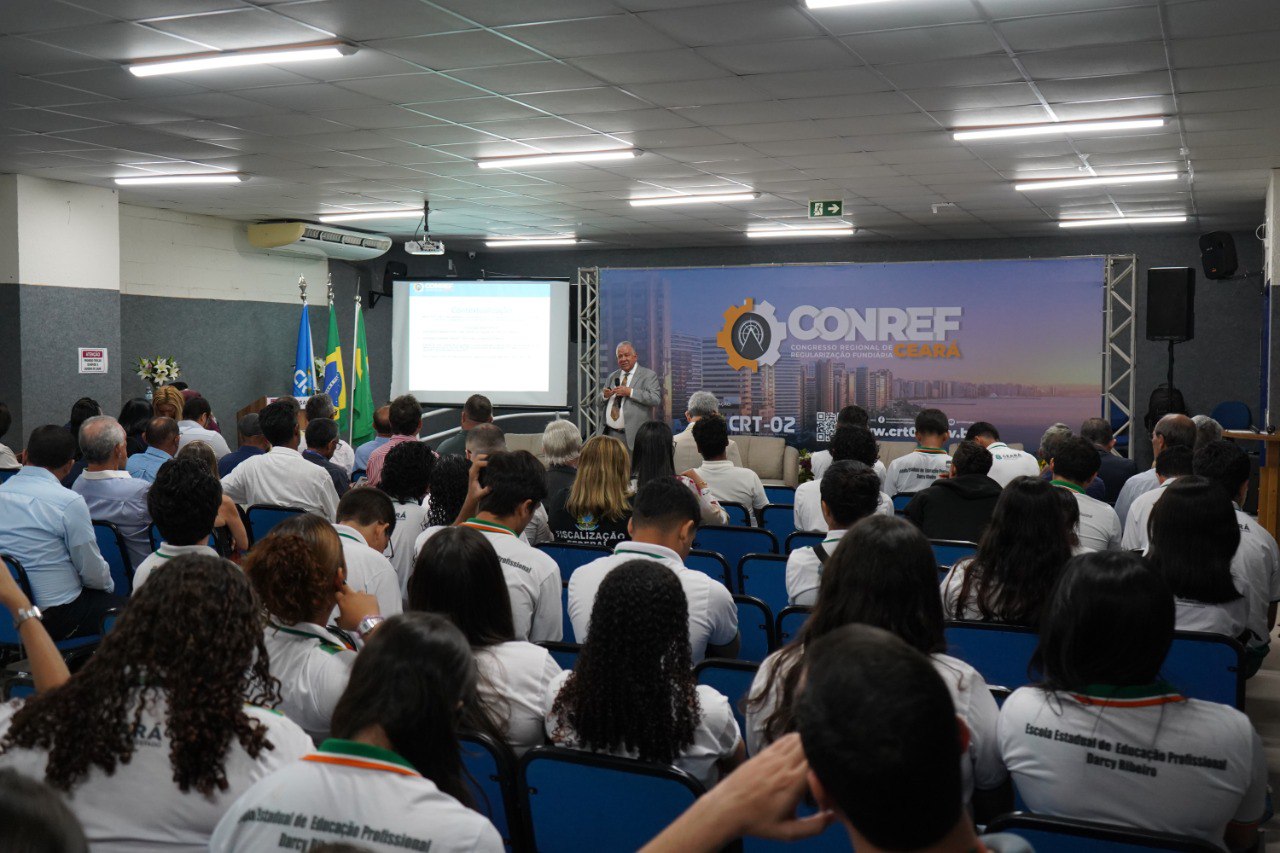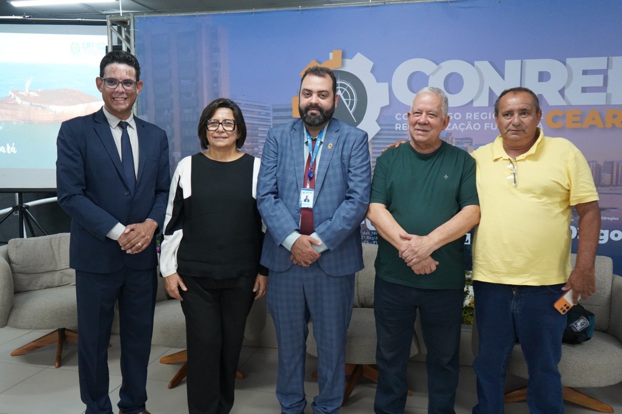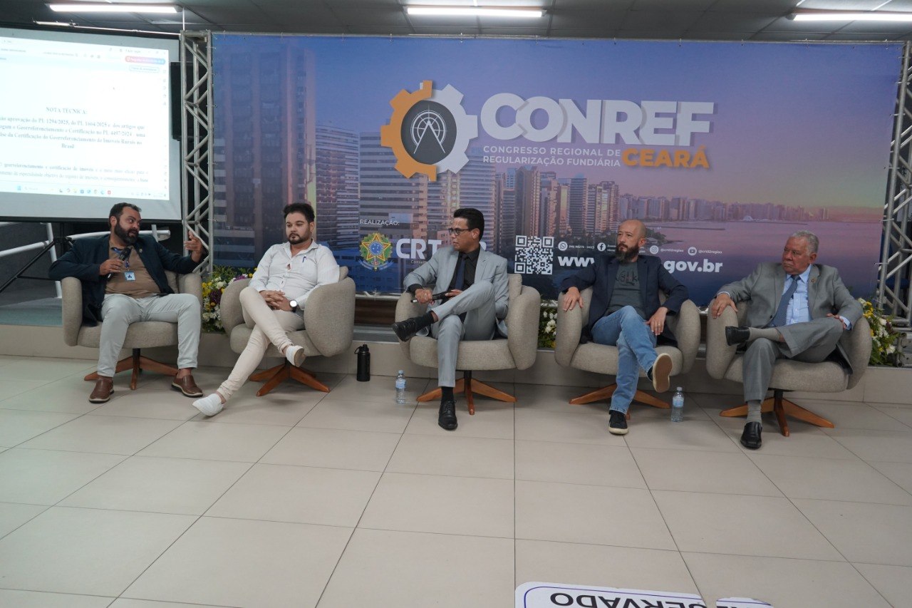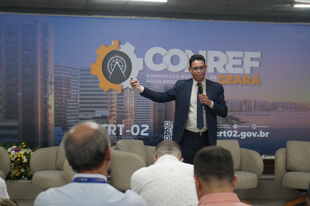 - Encerrando a programação técnica, foi realizada uma mesa-redonda, espaço dedicado ao diálogo e aprofundamento dos temas discutidos ao longo do evento, com a participação de Seliton Queiroz, Túlio Filho, Adolfo Lino, Evandro Zanini e José de Arimatéia, promovendo análises, perguntas e troca de experiências entre os profissionais da área.Encerramento oficialO encerramento oficial do CONREF 2025 foi conduzido pela Conselheira Regional do CRT-02 e Coordenadora do Fórum Nacional Feminino do Sistema CFT/CRTs, que representou o presidente João Batista Souza. Em sua fala, ela agradeceu, em nome do presidente, a todos os palestrantes e participantes, destacando a relevância do evento para o fortalecimento da atuação dos Técnicos Industriais na Regularização Fundiária.O CONREF 2025 – Ceará chega ao fim consolidando-se como um espaço estratégico de construção de conhecimento, integração institucional e valorização dos profissionais técnicos que atuam diretamente na transformação do território e da sociedade.