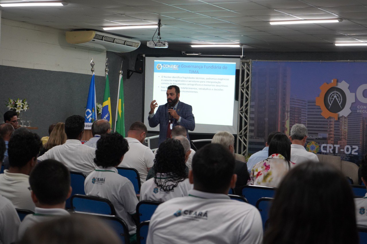 Durante sua apresentação, Seliton fez um agradecimento especial ao CRT-02, na pessoa do presidente João Batista Souza, pela parceria institucional e pelo termo de cooperação técnica com o Tribunal de Justiça do Maranhão, ressaltando o pioneirismo do Conselho nos avanços e na promoção de palestras sobre REURB voltadas aos Técnicos Industriais.