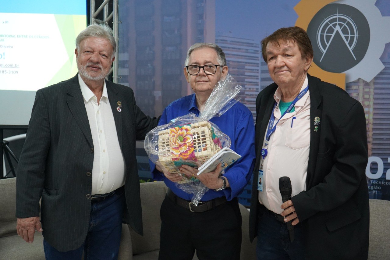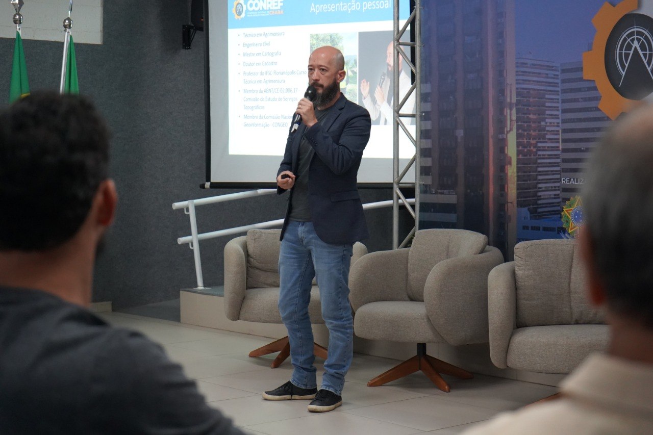 📚 Tema: “Proposta de Solução para o Conflito Territorial entre os Estados do Ceará e do Piauí.”Após a palestra, foram realizados sorteios de livros, sendo dois exemplares de autoria do próprio Vicente Kleber e um livro escrito por José de Arimatéia, proporcionando aos participantes acesso a conteúdos técnicos relevantes.Na sequência, o professor Adolfo Lino, do Instituto Federal de Santa Catarina (IFSC/Florianópolis), membro da ABNT/CE-02:006.17 – Comissão de Estudo de Serviços Topográficos, e integrante da Comissão Nacional de Geoinformação (CONGEO), ministrou a palestra: