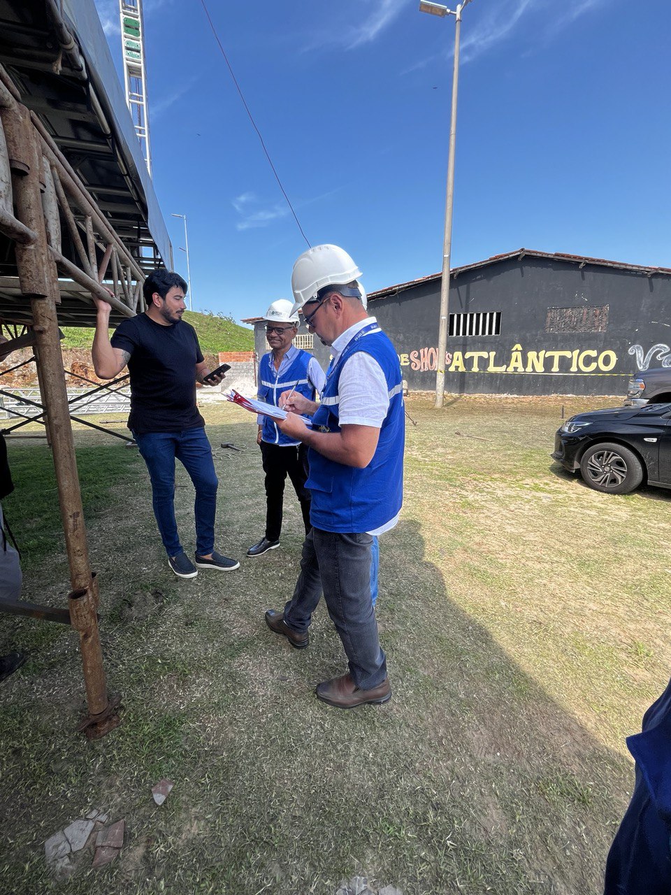 Anderson Galdino, empresário responsável pela empresa envolvida na montagem do evento, destaca a importância dessas fiscalizações. Segundo ele, a presença dos conselhos desde o início do processo é essencial, não apenas para a segurança física dos envolvidos, mas também para a prevenção de acidentes, especialmente em montagens complexas como as realizadas no litoral: “Ações como essas, além de educativas, são preventivas. É muito importante que, desde todo o processo, os conselhos estejam presentes. Mas, hoje aqui, principalmente em montagens no litoral, é de extrema importância que, tanto para a segurança de quem está em cima do palco, mas como também os foliões”. Galdino ressalta a necessidade de aderir a práticas seguras, como a contratação de profissionais certificados e empresas que estejam regularizadas junto aos conselhos profissionais e agradece a atuação dos técnicos e profissionais envolvidos na fiscalização: “É essencial que tenhamos todas as amarrações bem-feitas, que a empresa seja certificada, que ela faça parte de Conselhos. Então, para a maior segurança dos foliões, a nossa empresa faz adesão e também agradece a fiscalização feita por vocês, os técnicos e todos os profissionais envolvidos”.