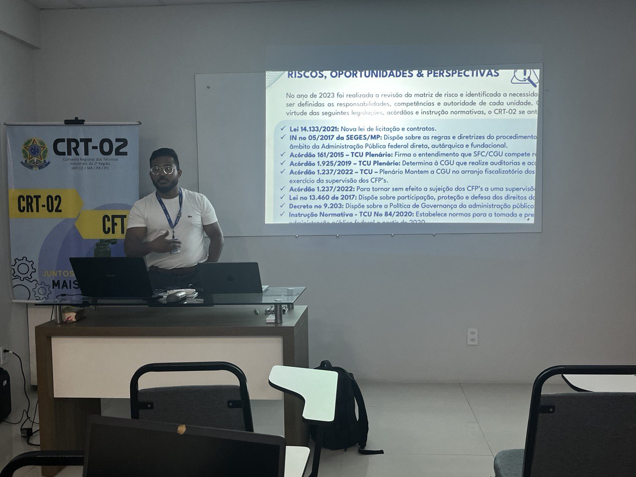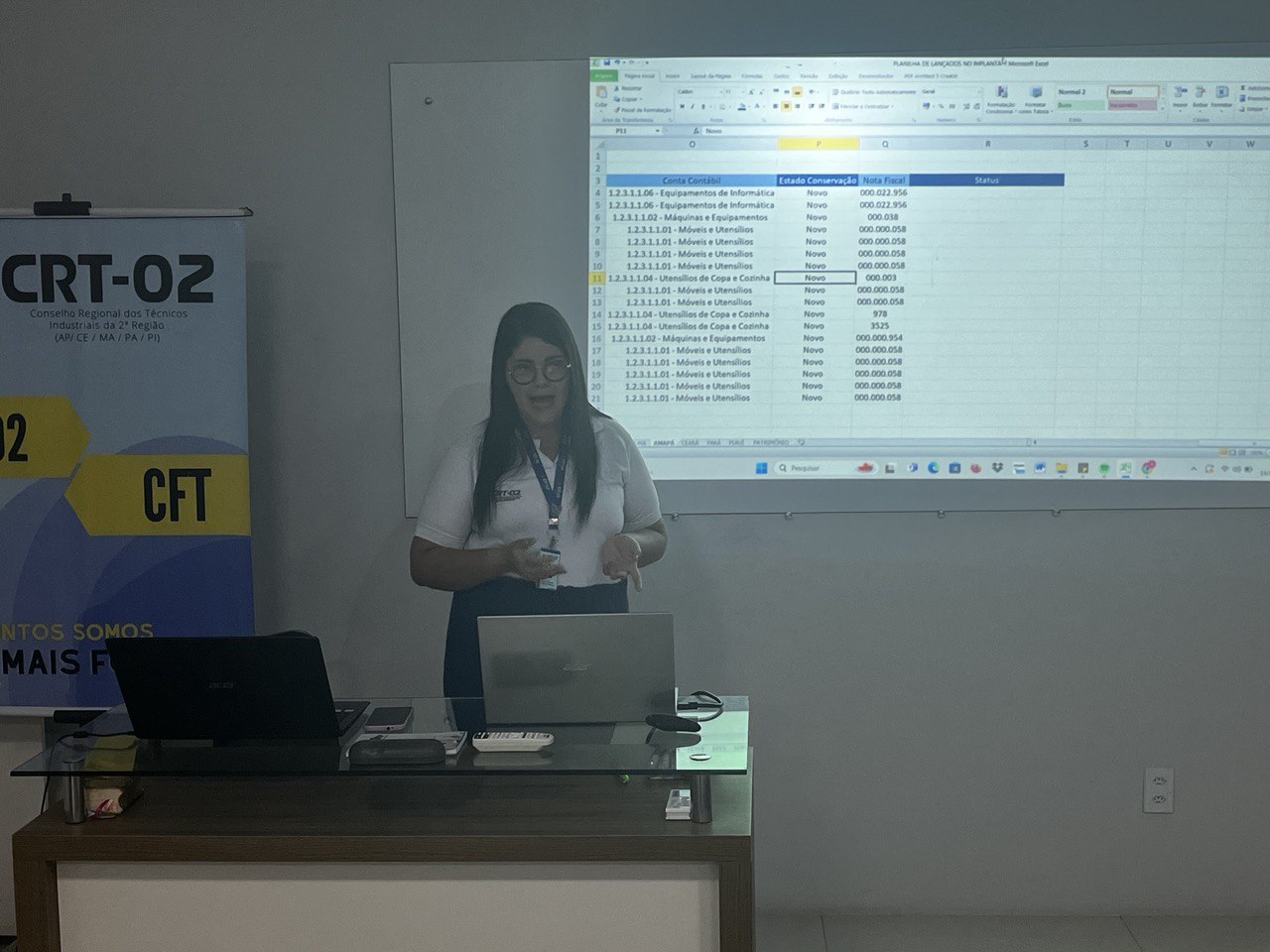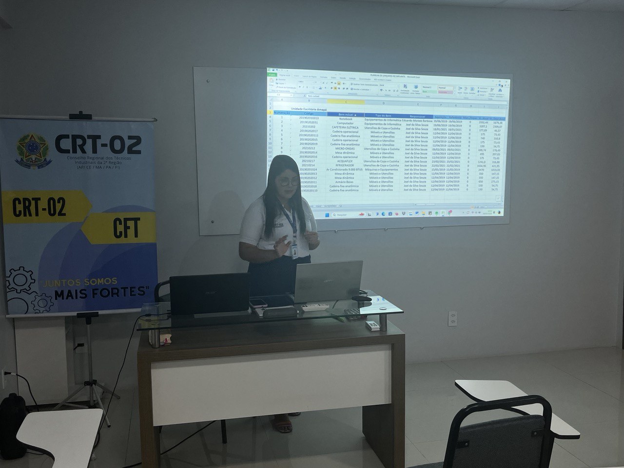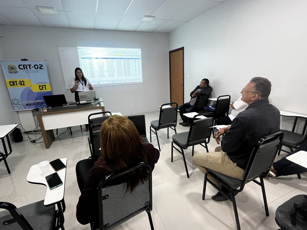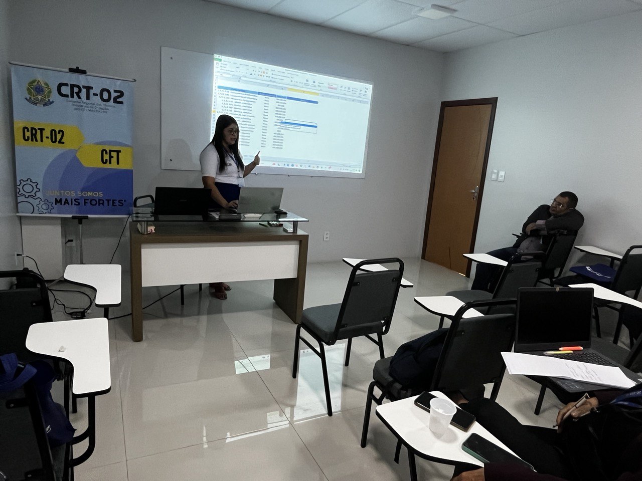 Além disso, a temática do Patrimônio foi abordada por Jessica Rocha, Chefe do Almoxarifado do CRT-02, que apresentou práticas e diretrizes para a gestão eficiente dos recursos materiais, destacando a relevância do controle patrimonial como pilar para a transparência e responsabilidade administrativa.