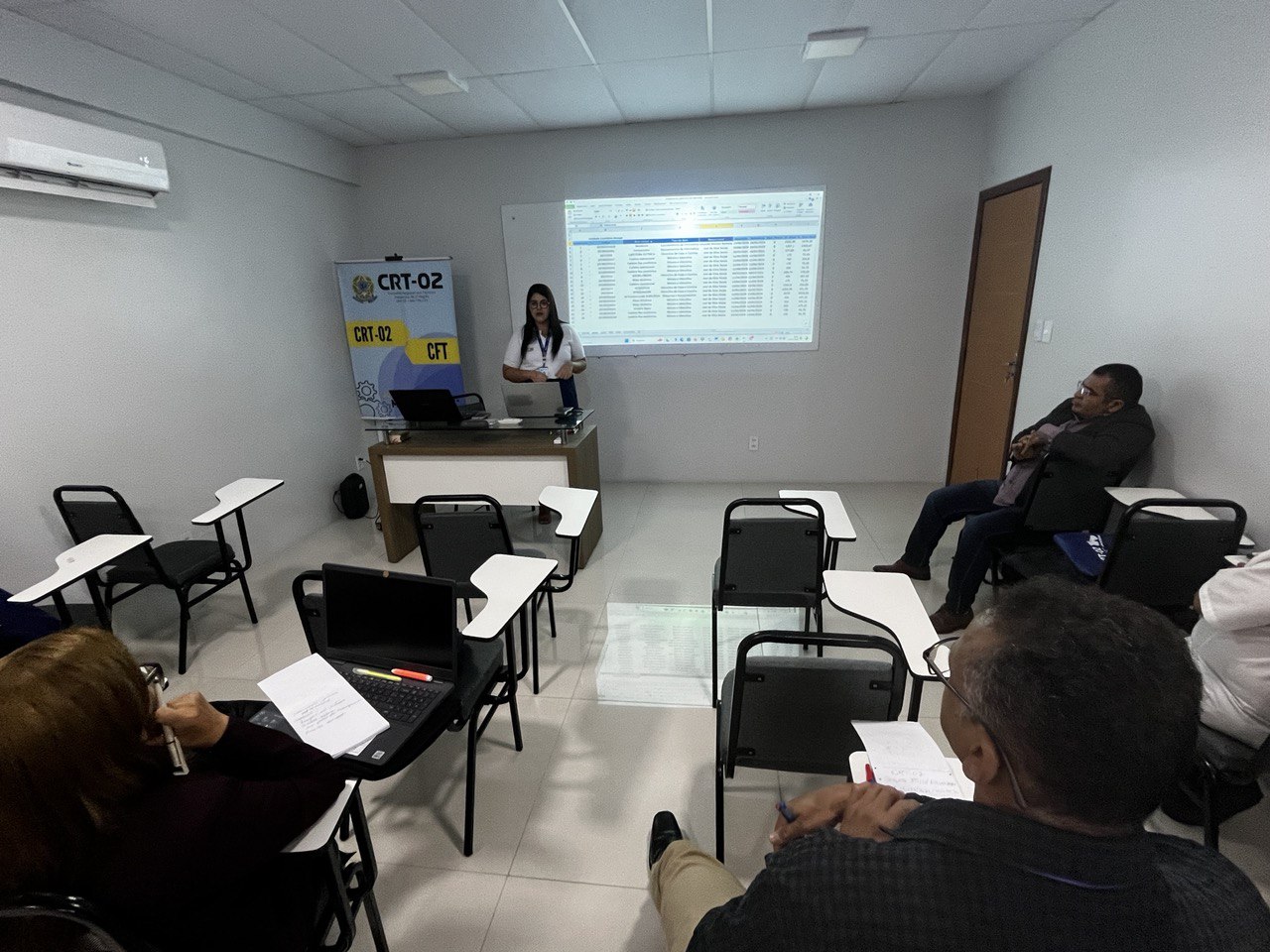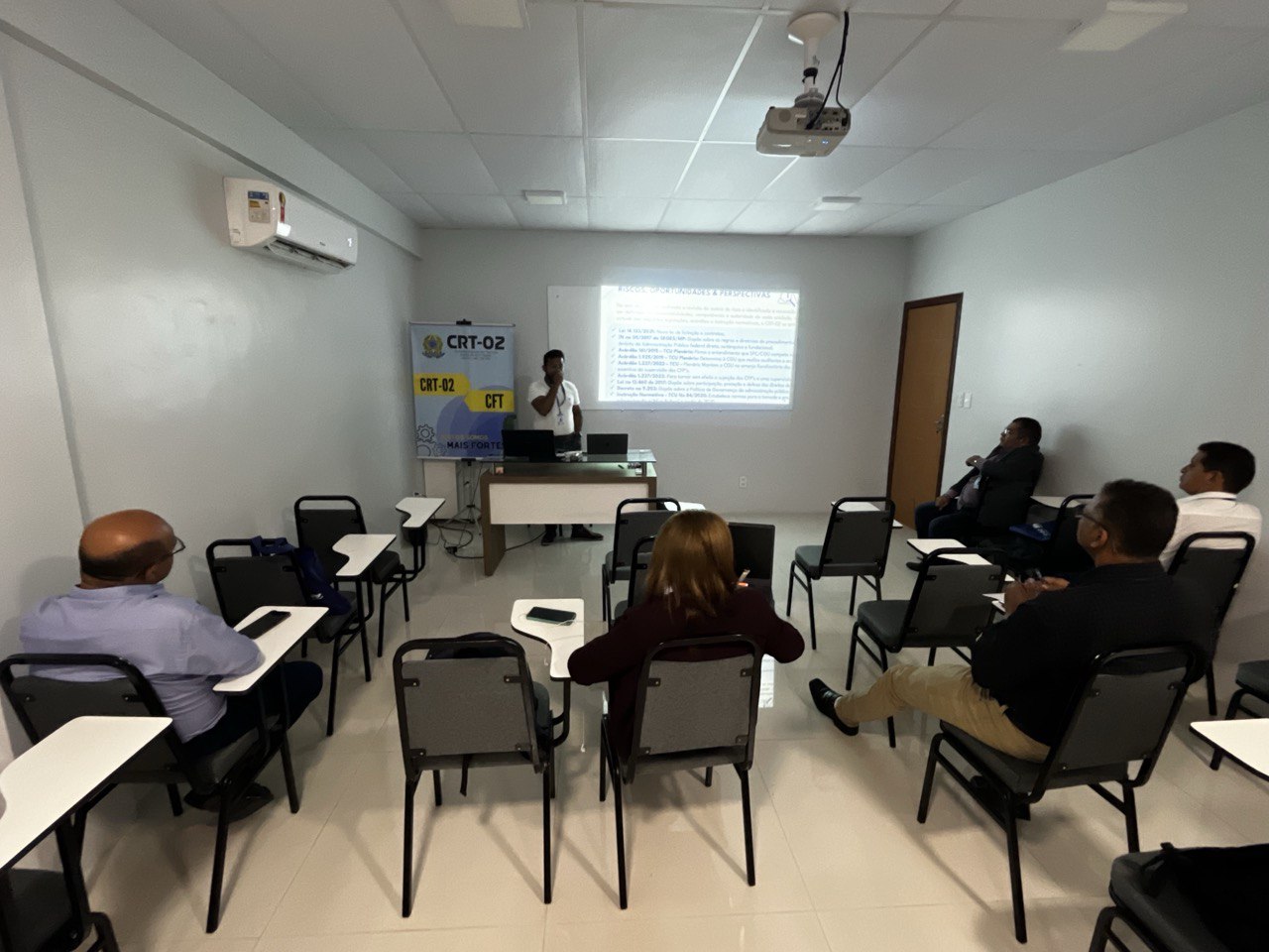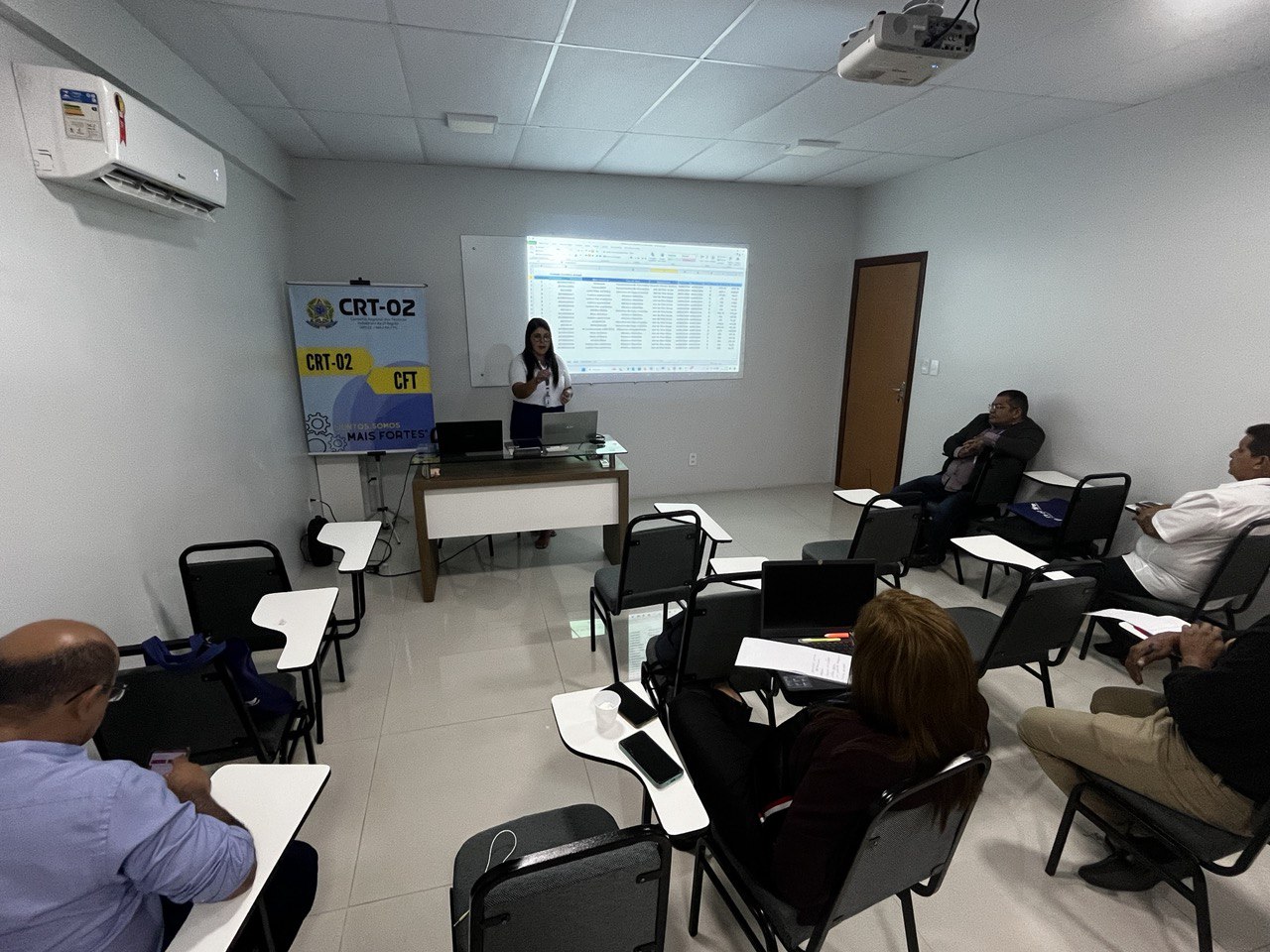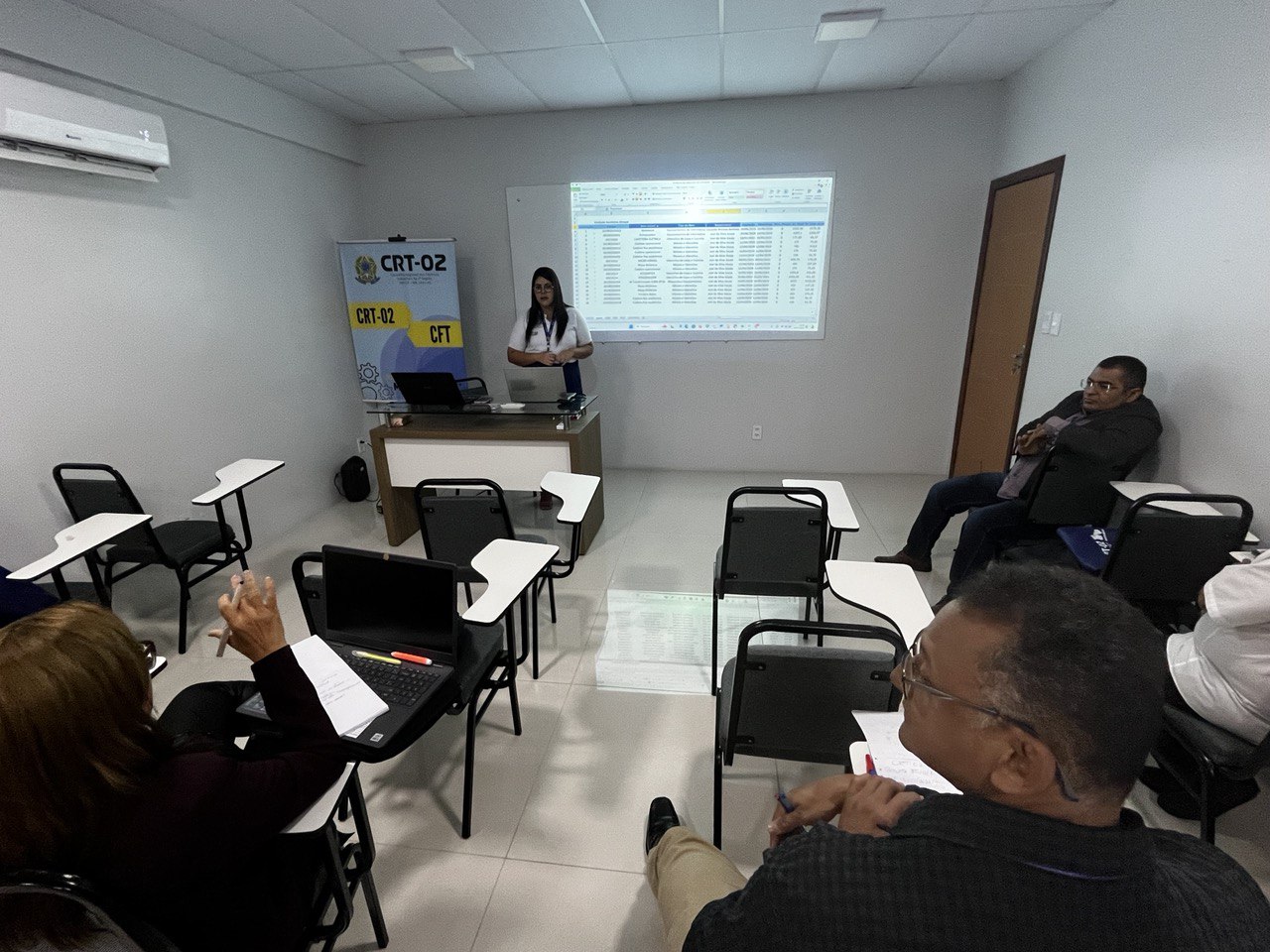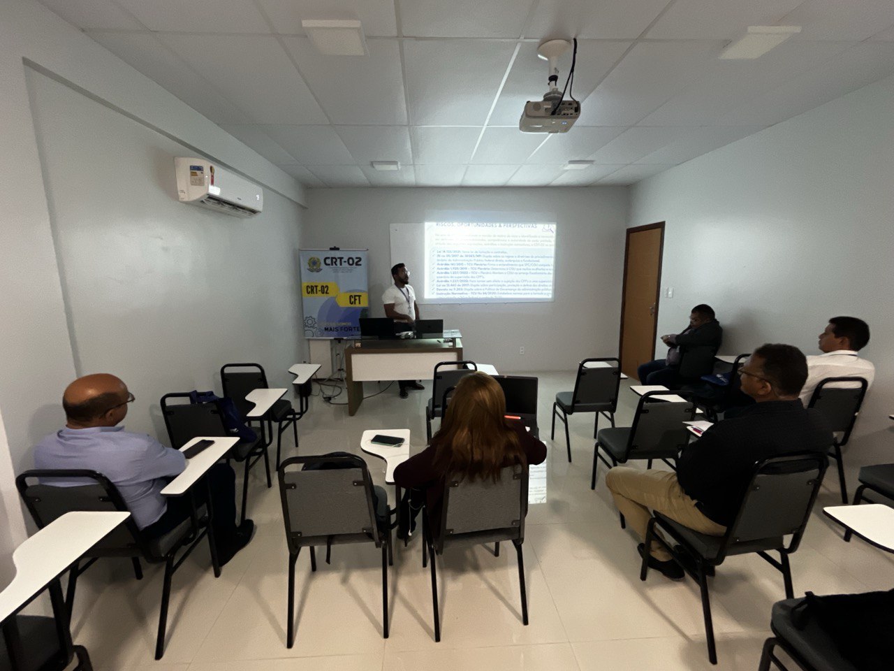 Além disso, a temática do Patrimônio foi abordada por Jessica Rocha, Chefe do Almoxarifado do CRT-02, que apresentou práticas e diretrizes para a gestão eficiente dos recursos materiais, destacando a relevância do controle patrimonial como pilar para a transparência e responsabilidade administrativa.