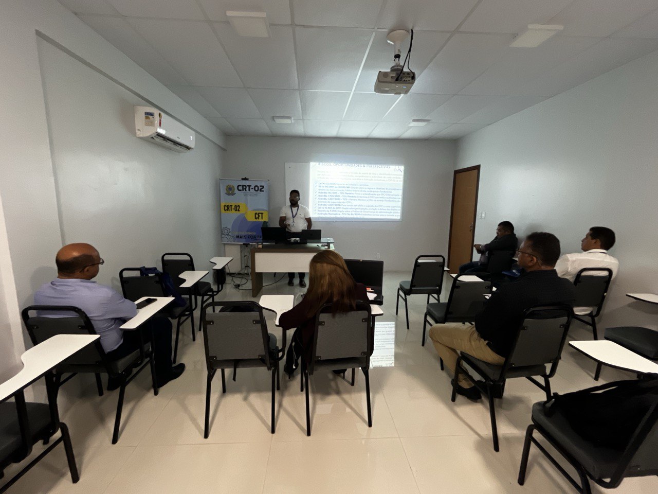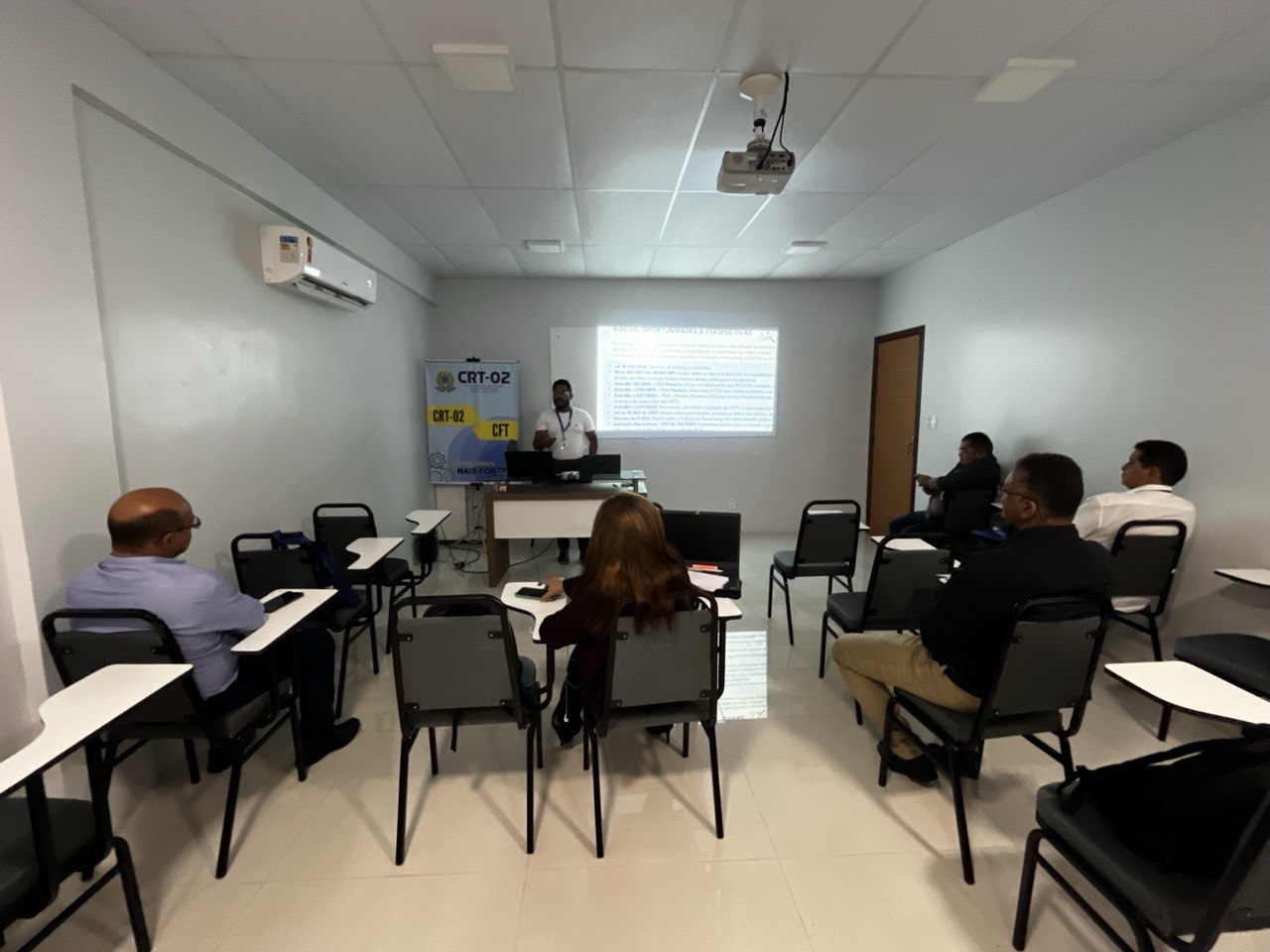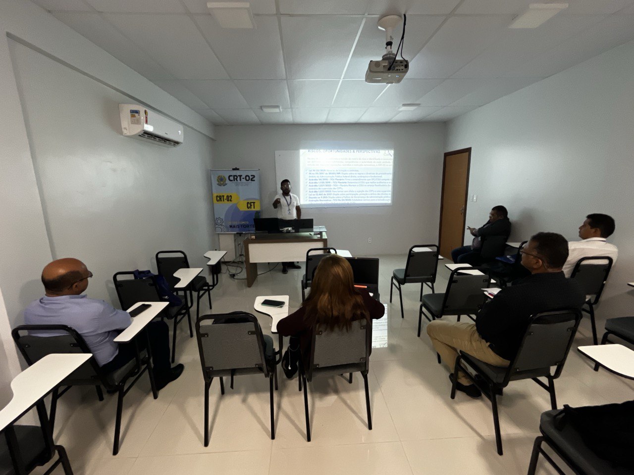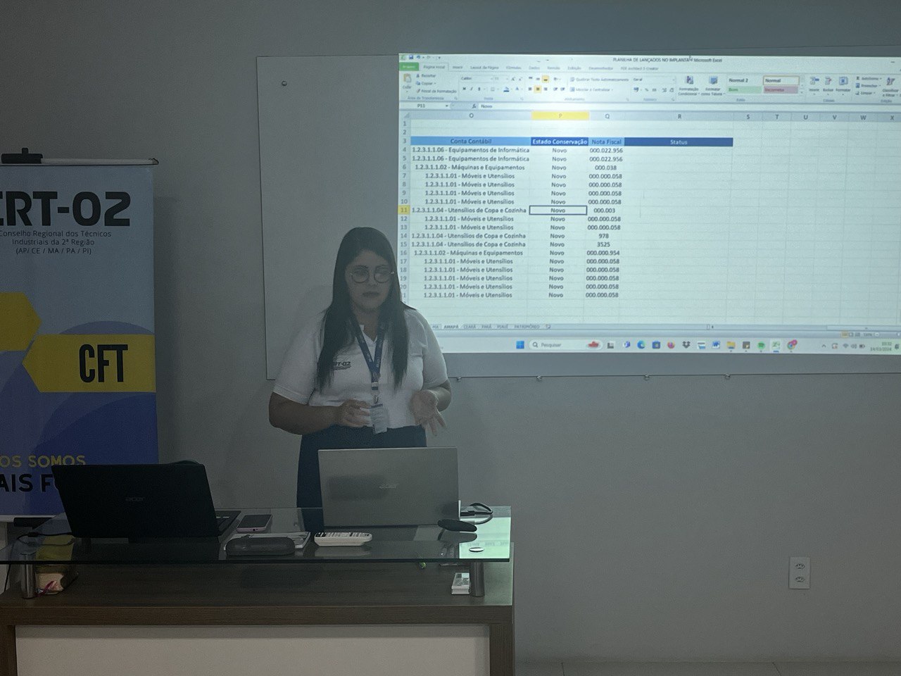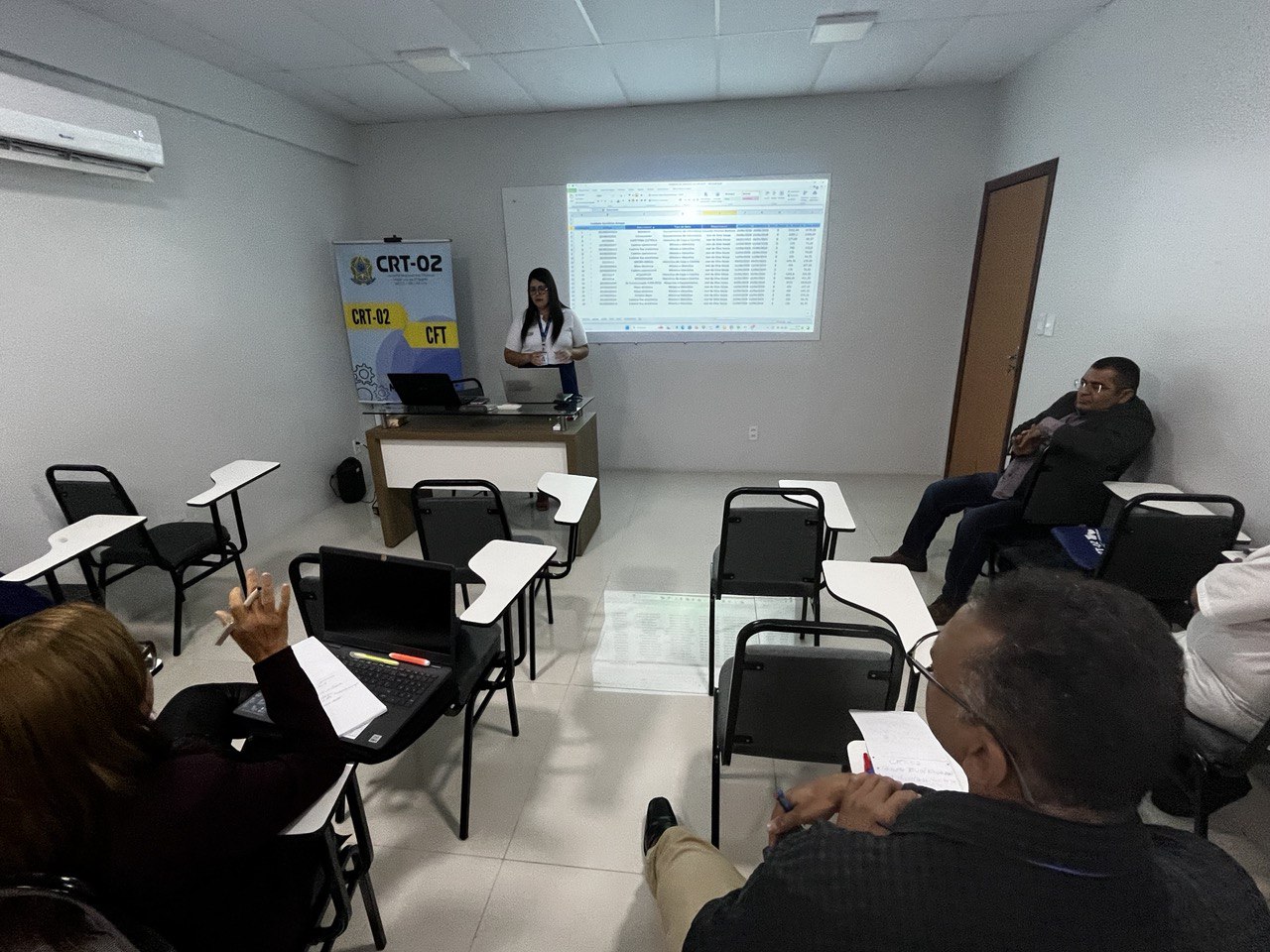 Além disso, a temática do Patrimônio foi abordada por Jessica Rocha, Chefe do Almoxarifado do CRT-02, que apresentou práticas e diretrizes para a gestão eficiente dos recursos materiais, destacando a relevância do controle patrimonial como pilar para a transparência e responsabilidade administrativa.