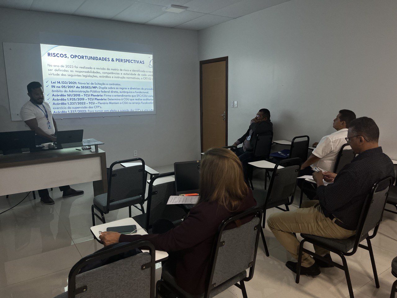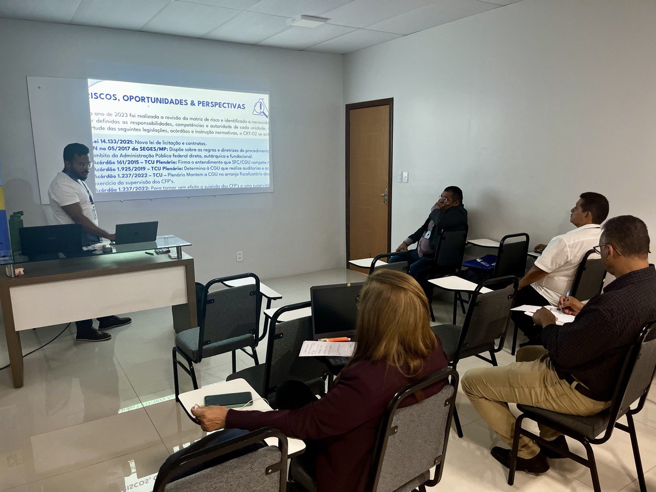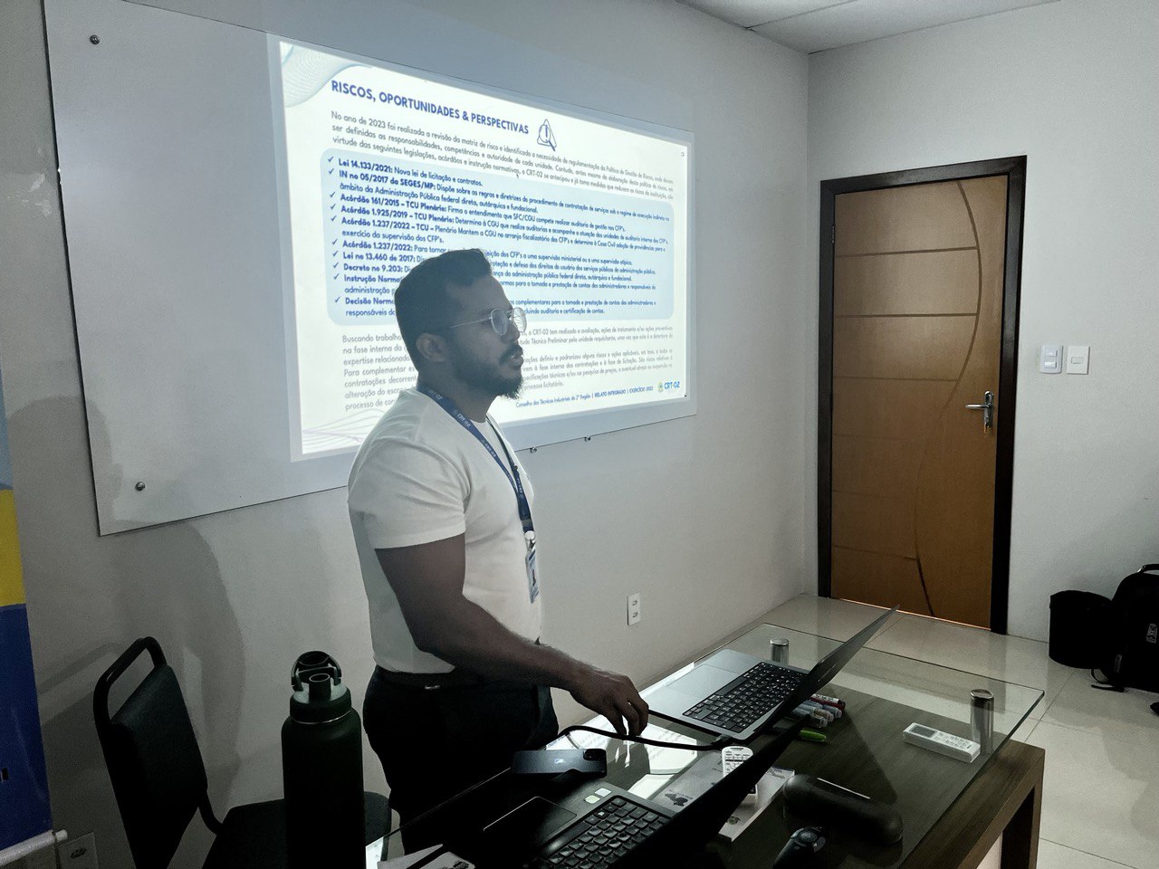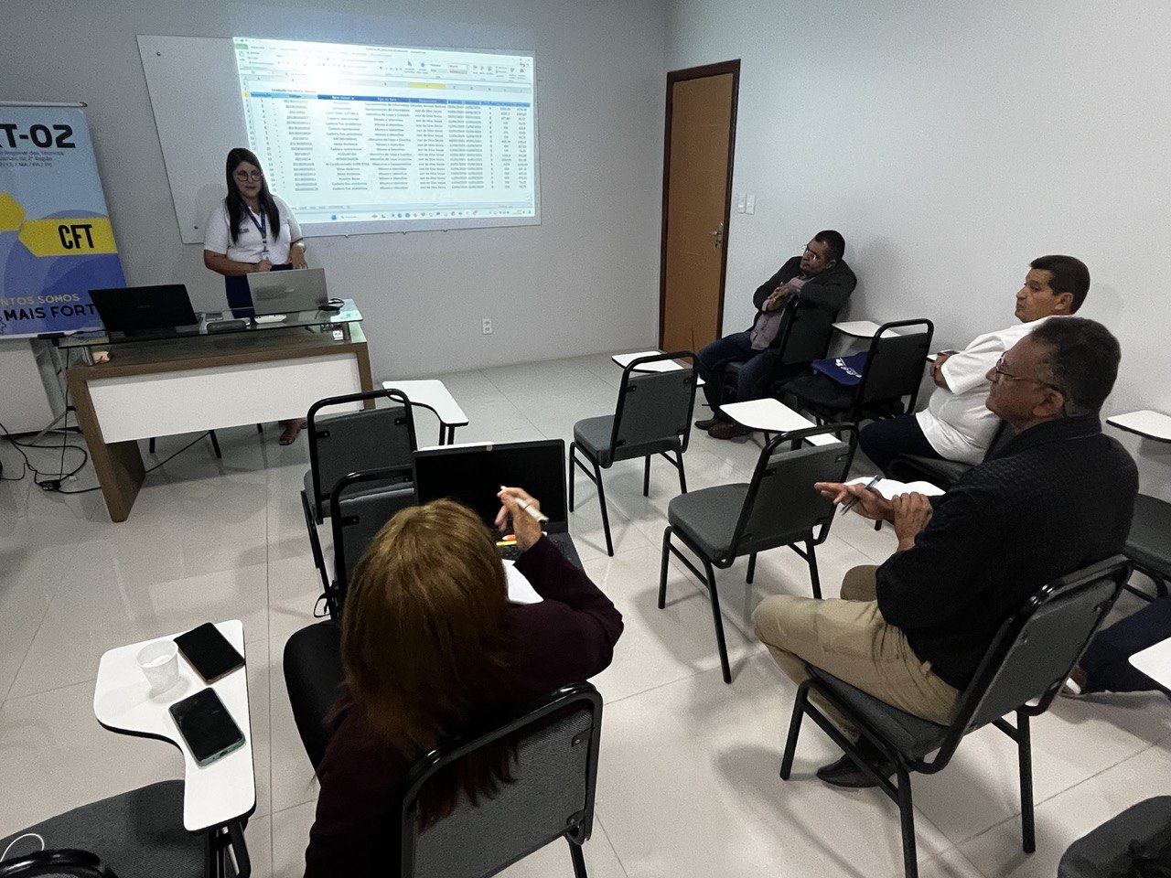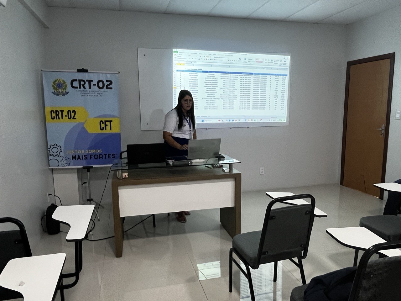 Além disso, a temática do Patrimônio foi abordada por Jessica Rocha, Chefe do Almoxarifado do CRT-02, que apresentou práticas e diretrizes para a gestão eficiente dos recursos materiais, destacando a relevância do controle patrimonial como pilar para a transparência e responsabilidade administrativa.
