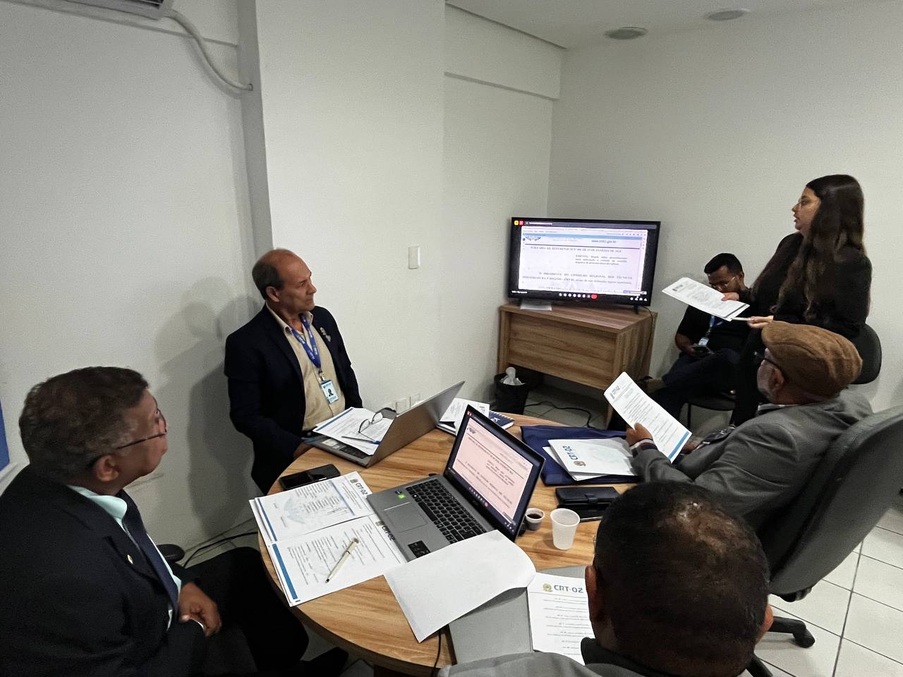 No período da tarde, no Escritório da Regional em Teresina – PI, teve lugar a 1ª Reunião Ordinária da Diretoria Executiva do CRT-02 de 2024. A pauta da reunião incluiu a Verificação do Quórum, Comunicações e o Relato, discussão e apreciação das matérias. Questões relevantes foram discutidas na Ordem do Dia, como o Relato Integrado/2023, apresentado por Jozerly Junior e Liene Prazeres, Assessor de Planejamento Estratégico e Assessora Contábil do CRT-02, respectivamente. Também foram abordadas Portaria e Autorização de procedimentos, apresentados pela Procuradora Jurídica do CRT-02, Julia Fontinhas, culminando com a Aprovação/Deliberação.