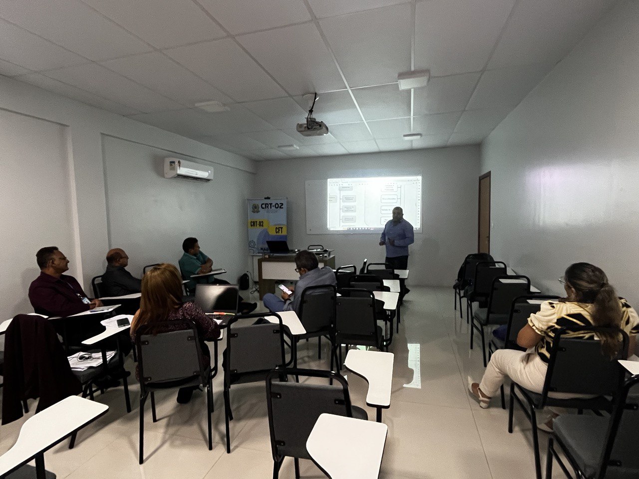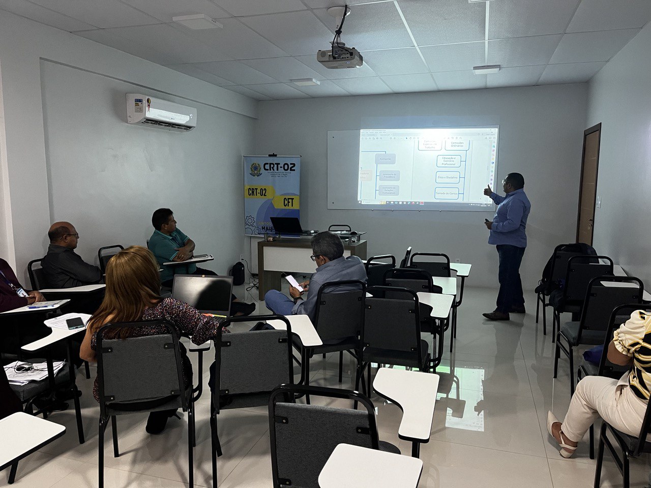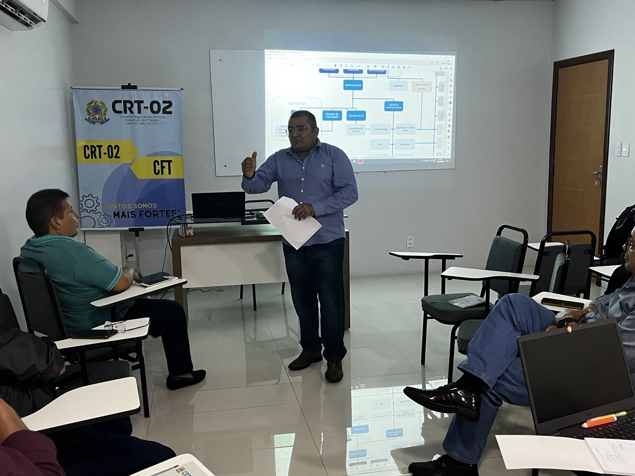 nfatizando a importância dessa iniciativa: “Estamos aqui presente nessa segunda etapa de treinamentos do ciclo de treinamentos que envolve todos os colaboradores do CRT-02, onde iniciamos com o atendimento, hoje estamos com os gerentes de escritórios e na próxima etapa será o pessoal da fiscalização. Lembrando que estão presentes nesses treinamentos os colaboradores dos cinco estados que compõem o CRT-02, Piauí, Pará, Maranhão, Ceará e Amapá, onde a gente está desenvolvendo as habilidades necessárias para que haja uma padronização dos procedimentos administrativos do CRT-02, que é uma autarquia federal, como é de conhecimento de todos. E quem ganha com isso? A nossa sociedade técnica de Técnicos industriais nível médio. ”